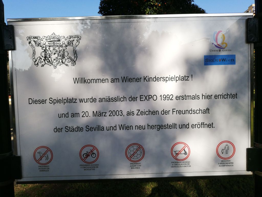 En el año 1992, con motivo de la Exposición Universal de Sevilla Expo 92 , el Ayuntamiento de Viena donó a la ciudad de Sevilla una completa instalación de juegos en este parque, que fue reinaugurada el 21 de marzo de 2003 con la completa renovación de estos. Una fuente para beber a la entrada del parque junto a juegos para niños pequeños, un estanque construida con un mosaico de trozos de cerámica fueron construidos con tal ocasión junto con otras infraestructuras que el Ayuntamiento ha ido mejorando, un pequeño campo de futbol infantil y nuevos elementos para adolescentes y elementos biosaludables deportivos para personas mayores