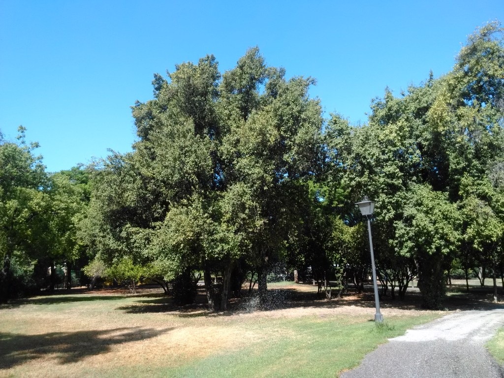 Muchos de los chopos Populus canadiensis y P.alba pyramidalis que mayoritariamente formaban la barrera de cerramiento del parque junto con otras especies ,Robinias ,Grevilleas etc. has sido cortados en su decaimiento, son arboles de crecimiento rápido y poca durabilidad en nuestro clima.