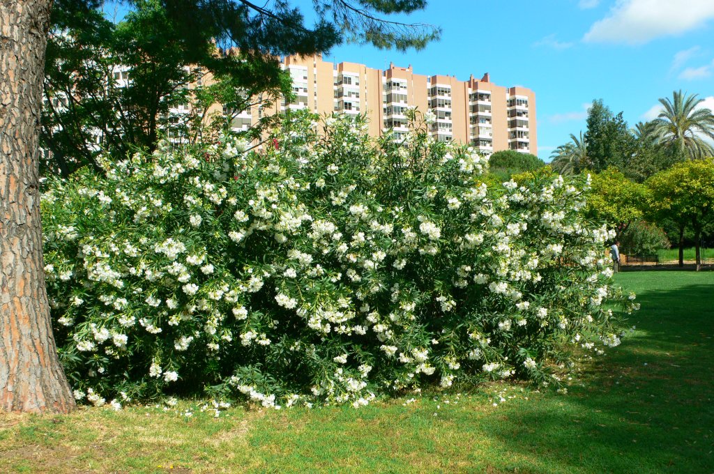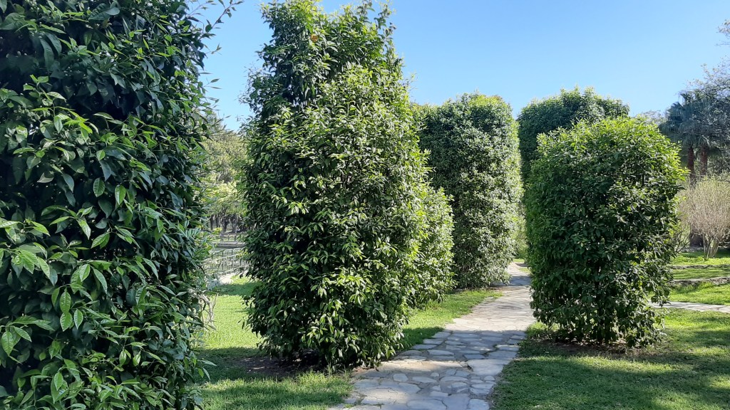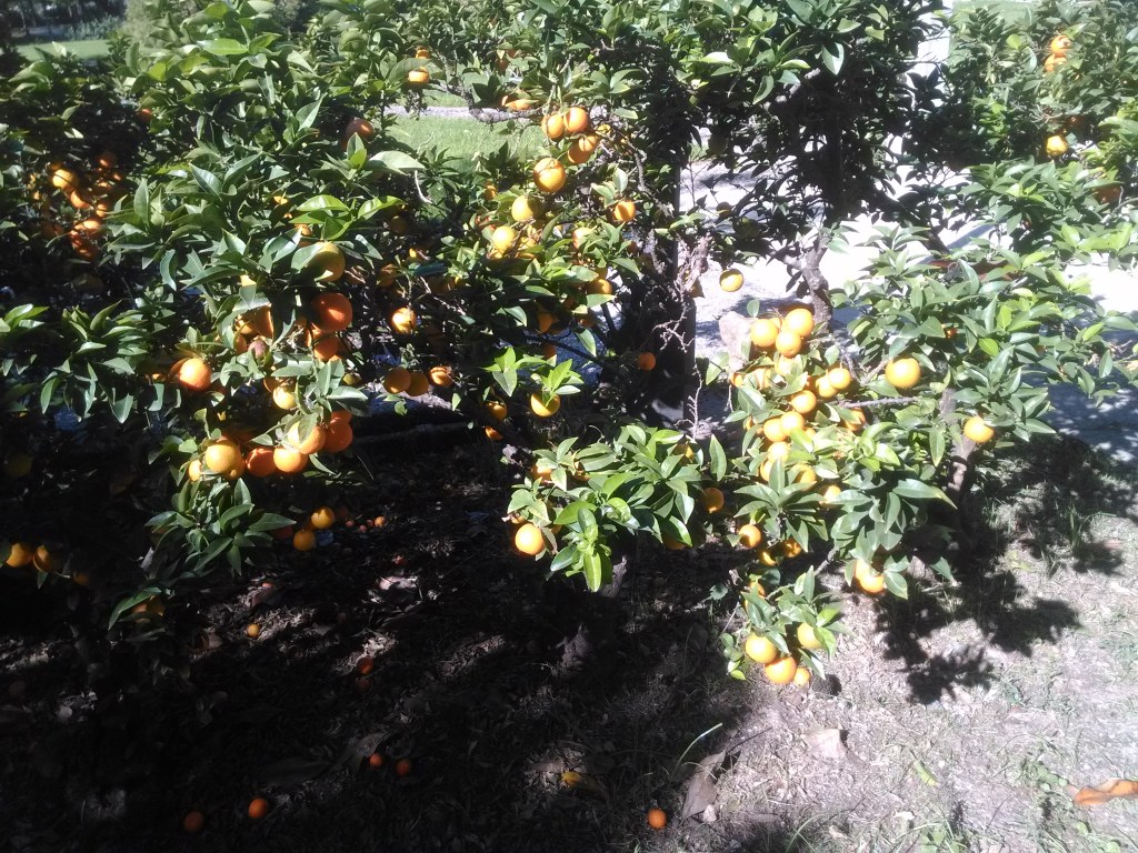 Unos buenos ejemplares de árbol picapica, Lagunaria patersonii y de magnolios.-Magnolia grandiflora podemos encontrar en esta zona aparte de las diferentes especies de naranjos que antes hemos aludido.