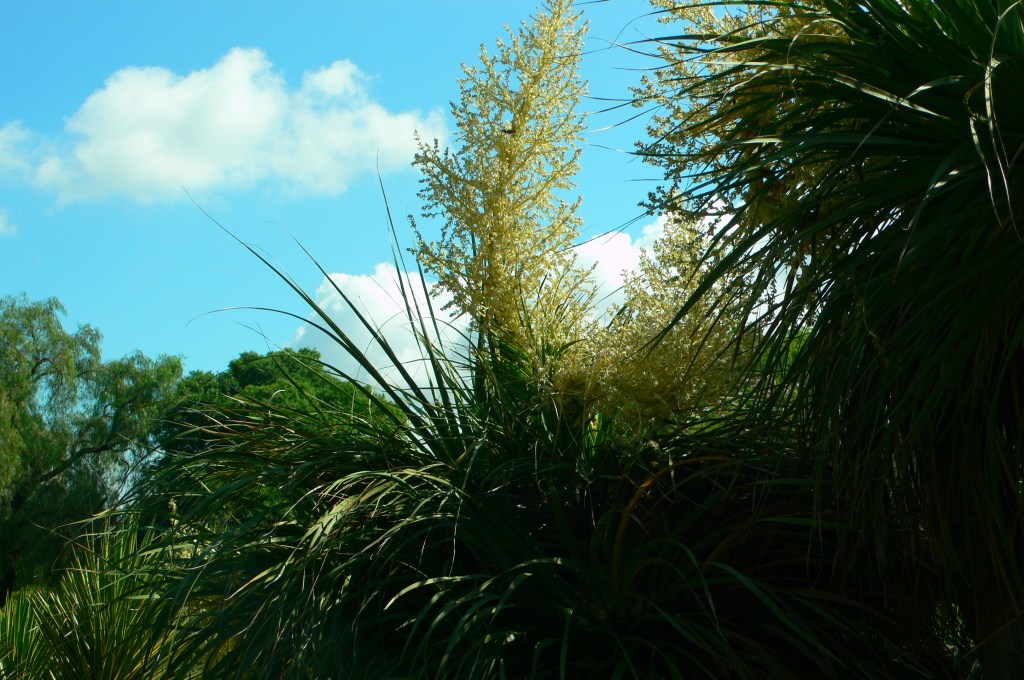 La floración de la Beaucarnea recurvata comúnmente patas de elefante o Nolinas que desde el año 1992 están depositadas en contenedores de plástico en el Pabellón de Navegación sufriendo los avatares de cualquier planta confinada en una superficie reducida. Así como también las del Jardín Americano. En el Jardin de cactáceas son idénticas a las del Parque de los Príncipes