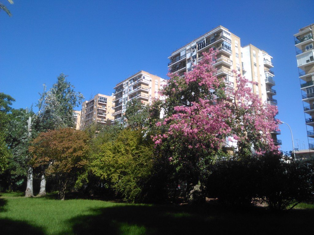 Un palo borracho.-Ceiba speciosa se ha introducido en el parque estos últimos años y ya ofrece importantes floraciones en octubre.