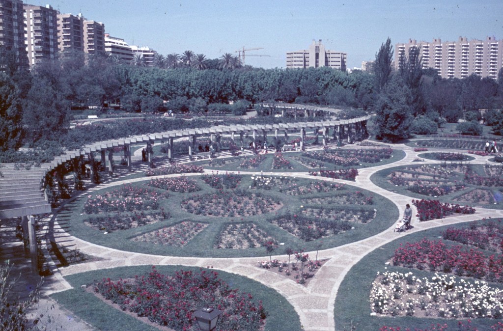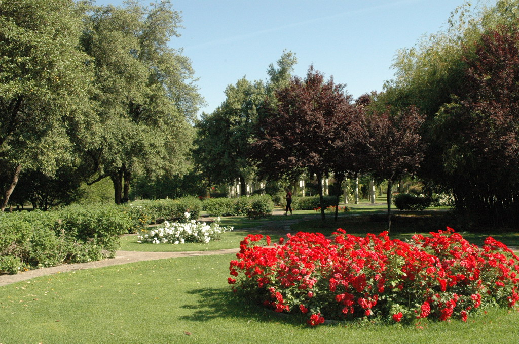 Desde su origen entre los elementos que lo enriquecían la figura del parque contó con una rosaleda, diseñada por el autor de este artículo, Granada ,Málaga, Cartagena, Valladolid etc.…,por supuesto Madrid y Barcelona cuentan con parques que han dedicado una parte de estos a un jardín monográfico dedicado a la rosa «la reina de las flores»