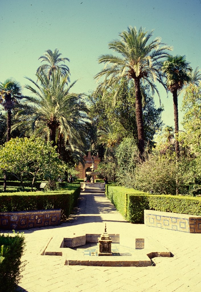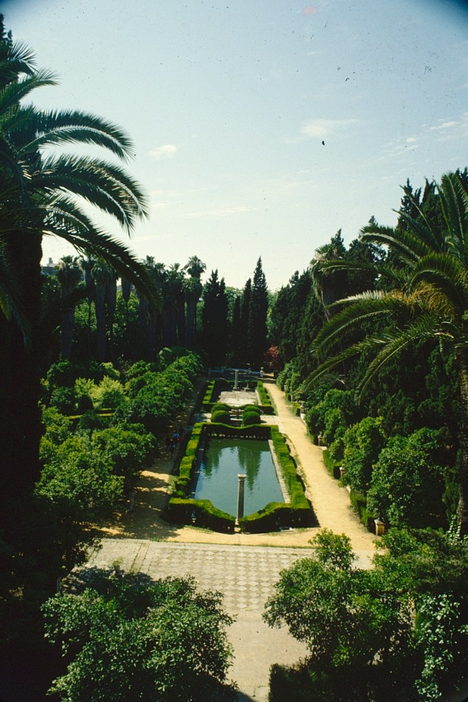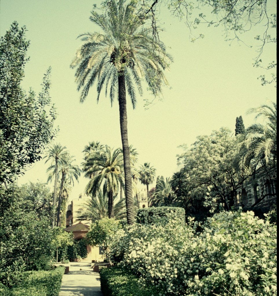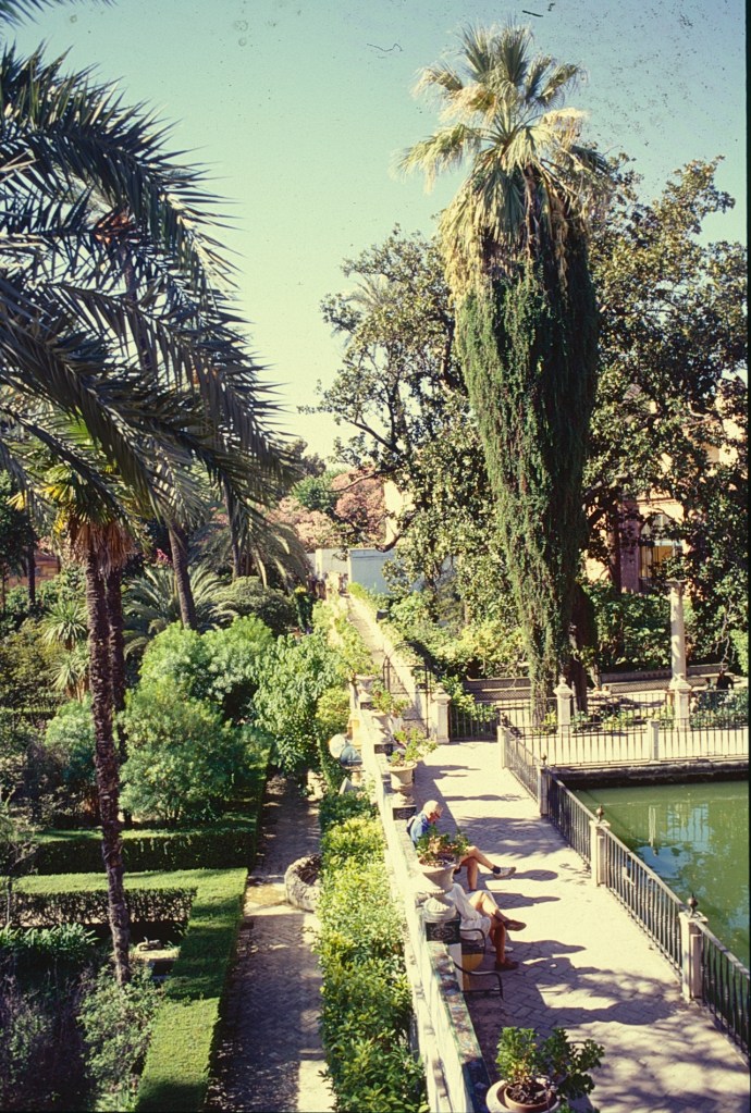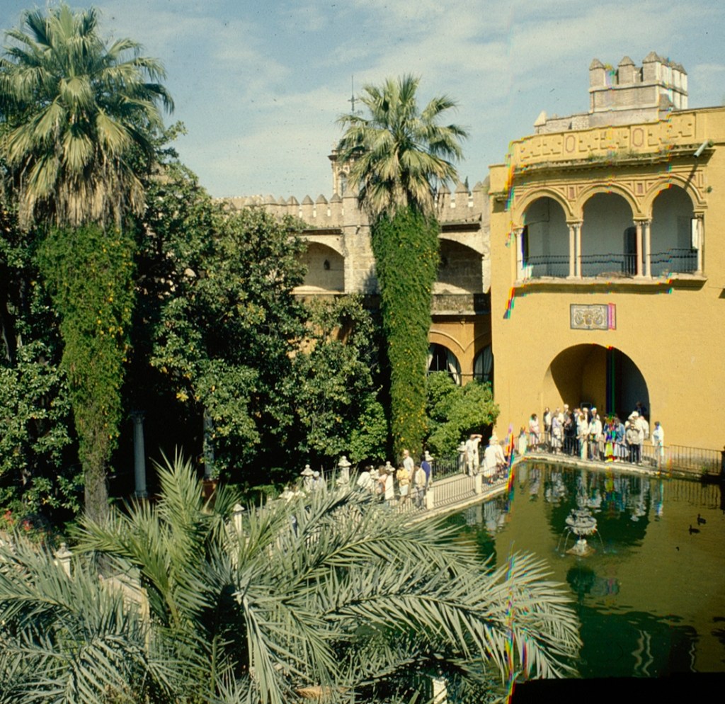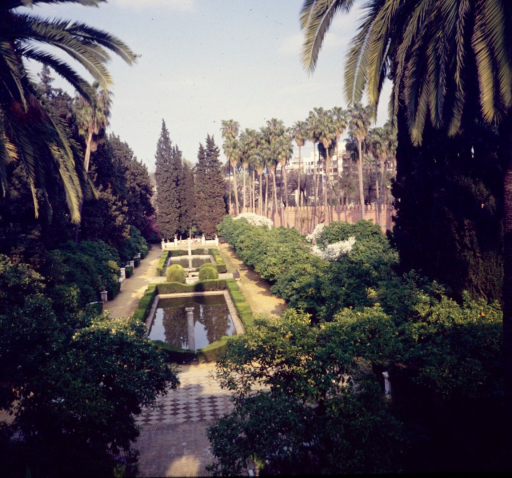 Fotos antiguas de diapositivas digitalizadas tomadas en distintas fechas en los jardines de los Reales Alcázares de Sevilla.