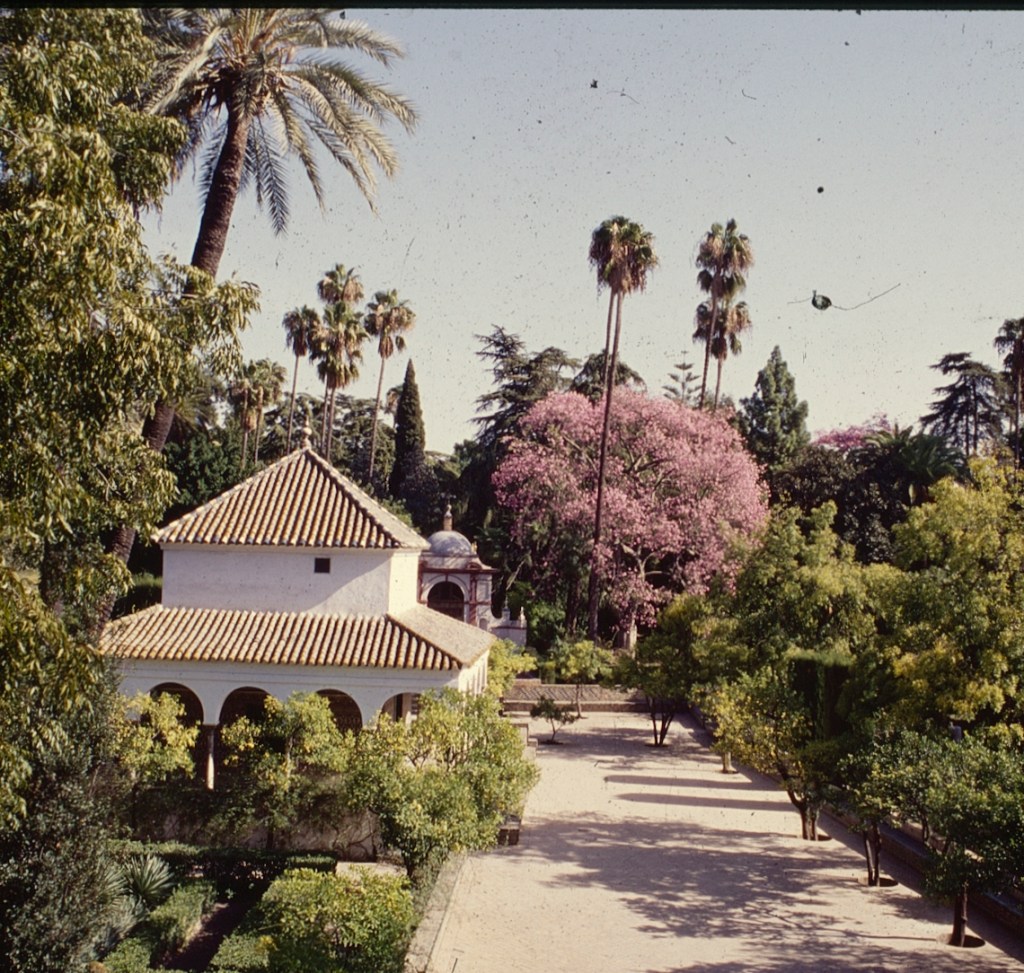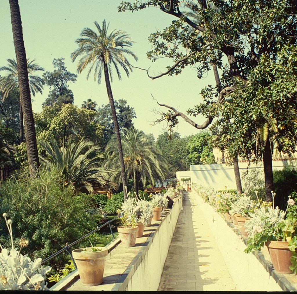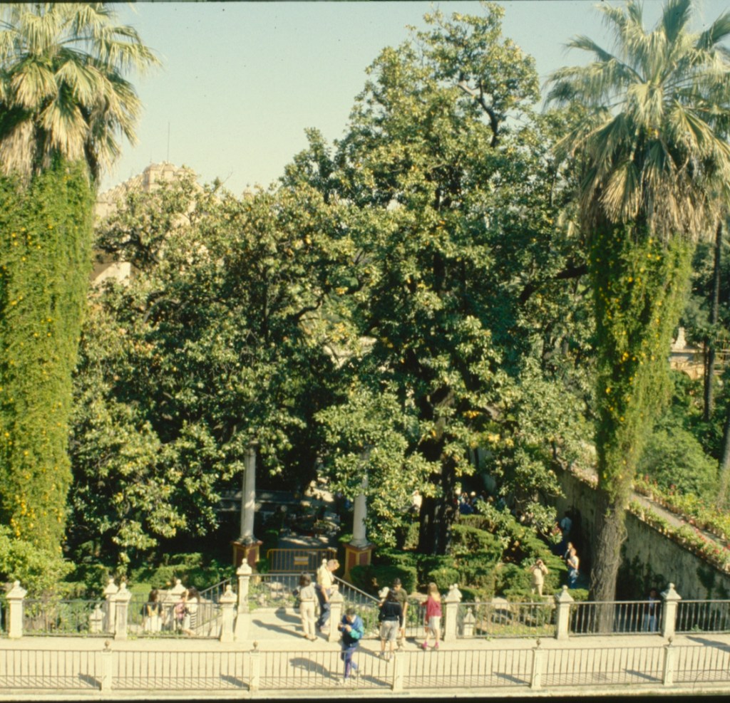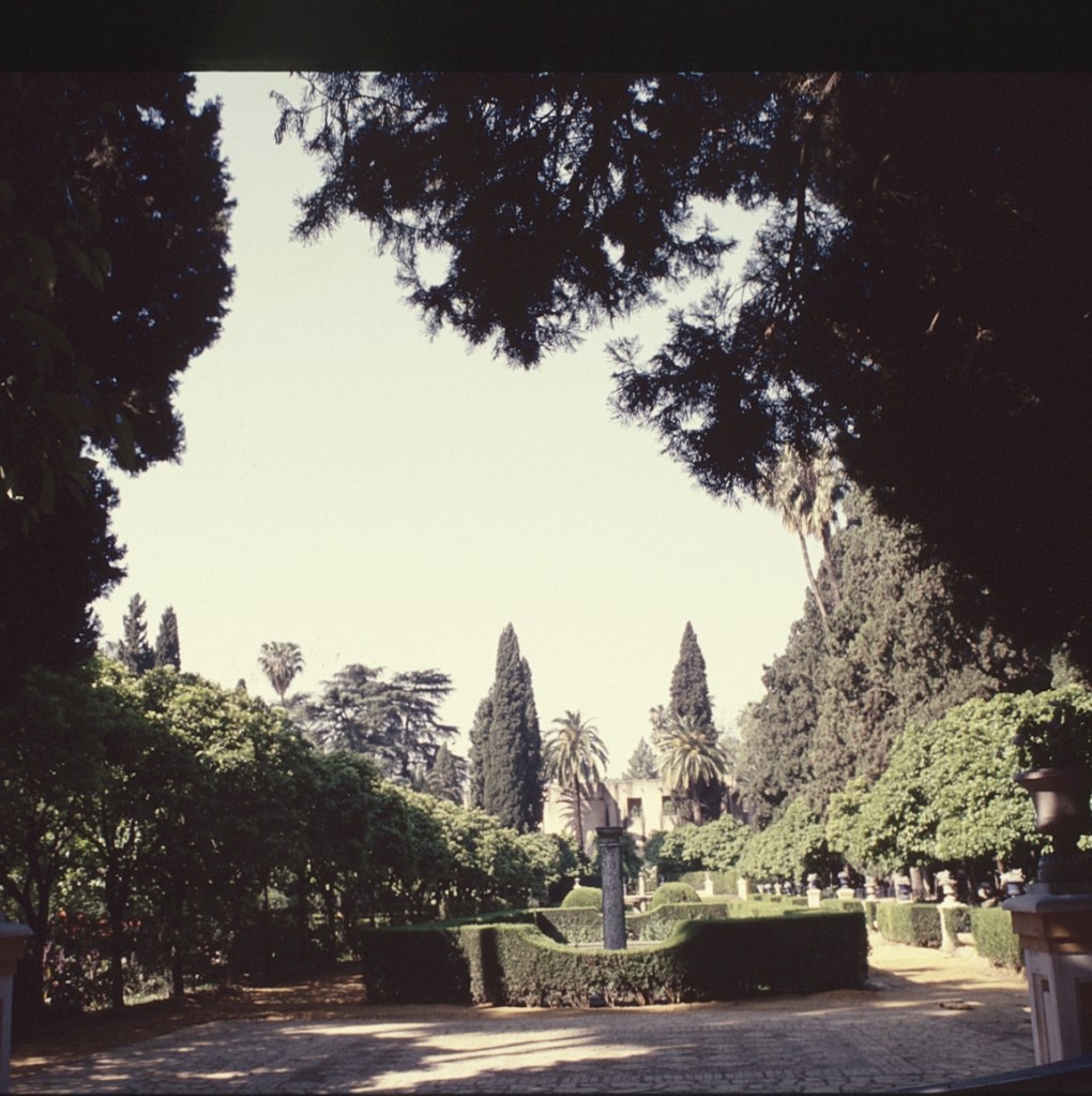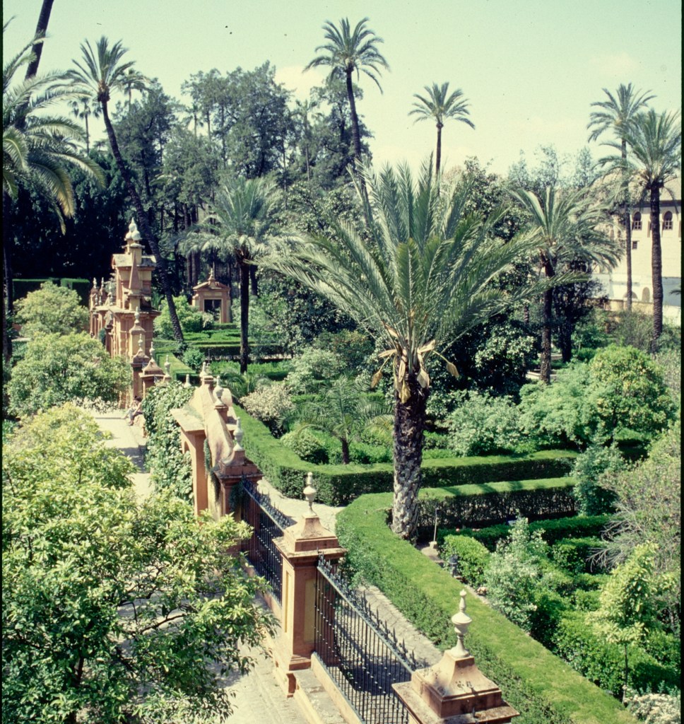 Fotos antiguas de diapositivas digitalizadas tomadas en distintas fechas en los jardines de los Reales Alcázares de Sevilla.
