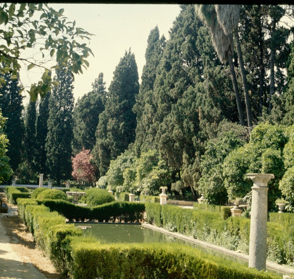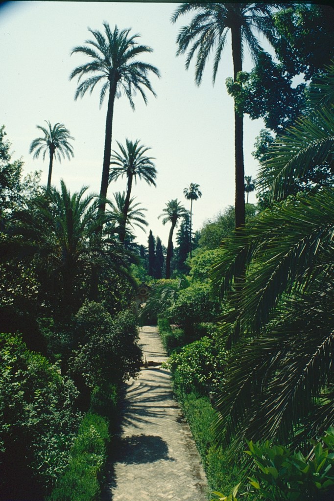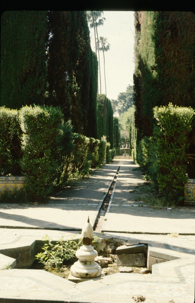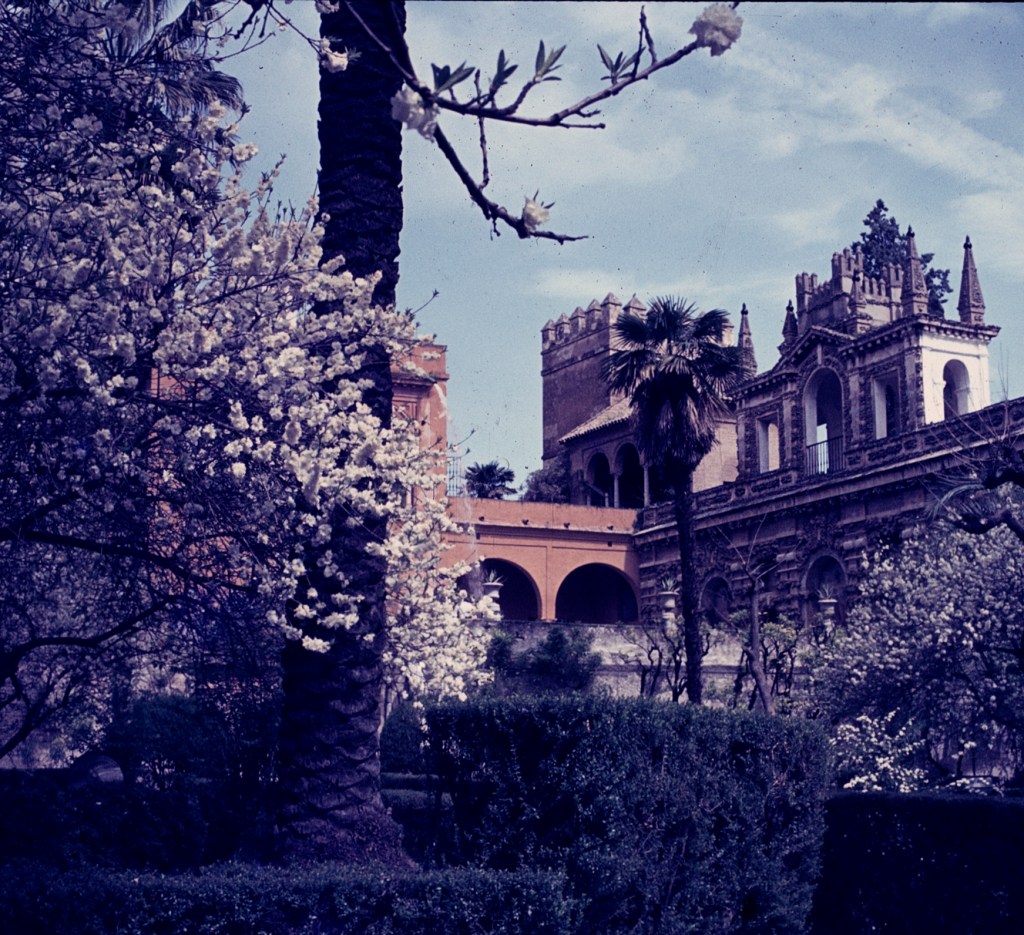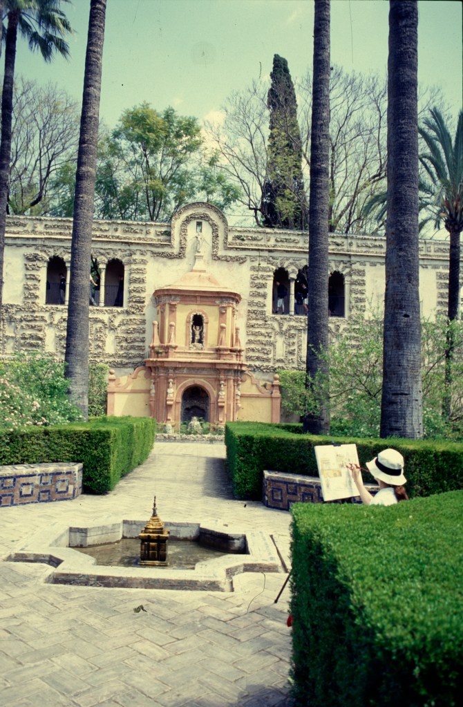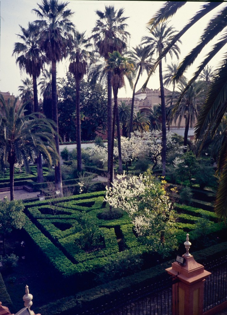 Fotos antiguas de diapositivas digitalizadas tomadas en distintas fechas en los jardines de los Reales Alcázares de Sevilla.