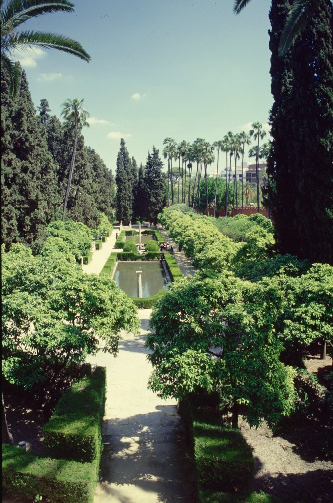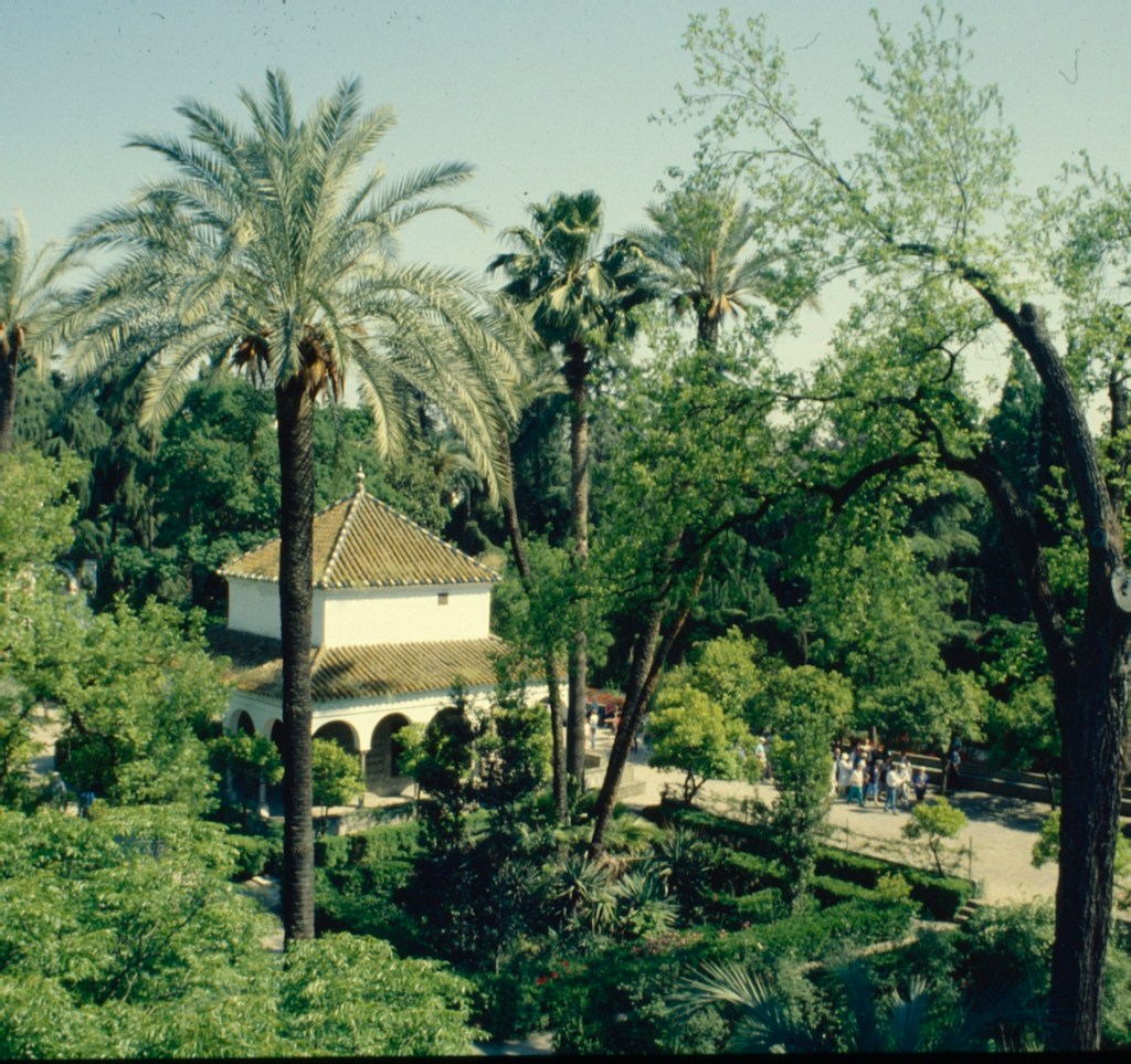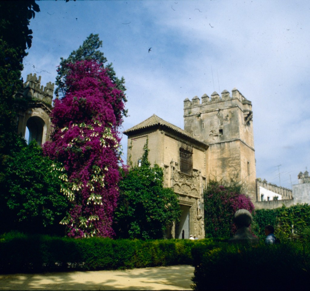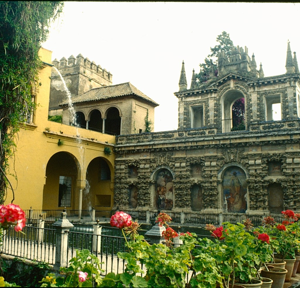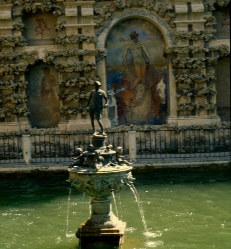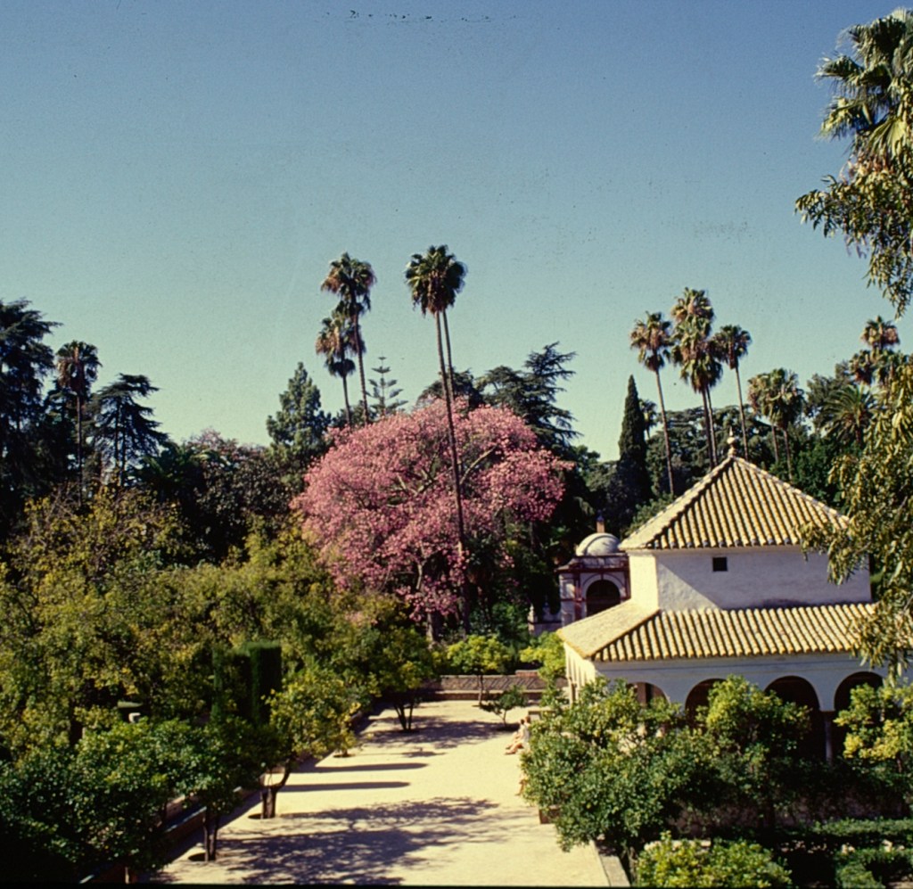 Fotos antiguas de diapositivas digitalizadas tomadas en distintas fechas en los jardines de los Reales Alcázares de Sevilla.