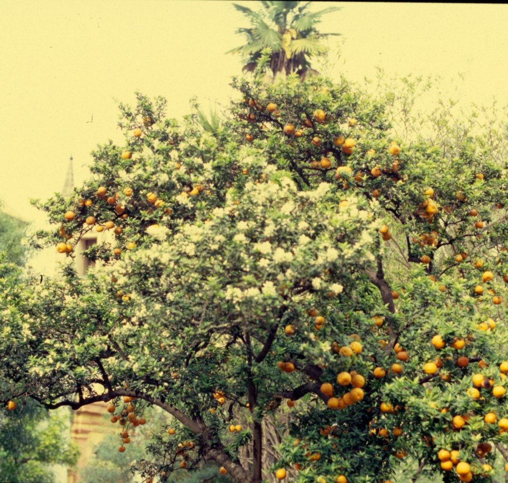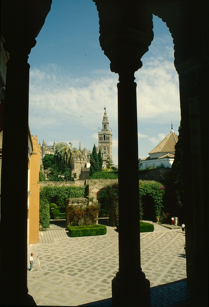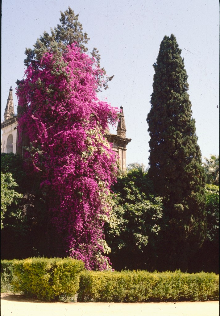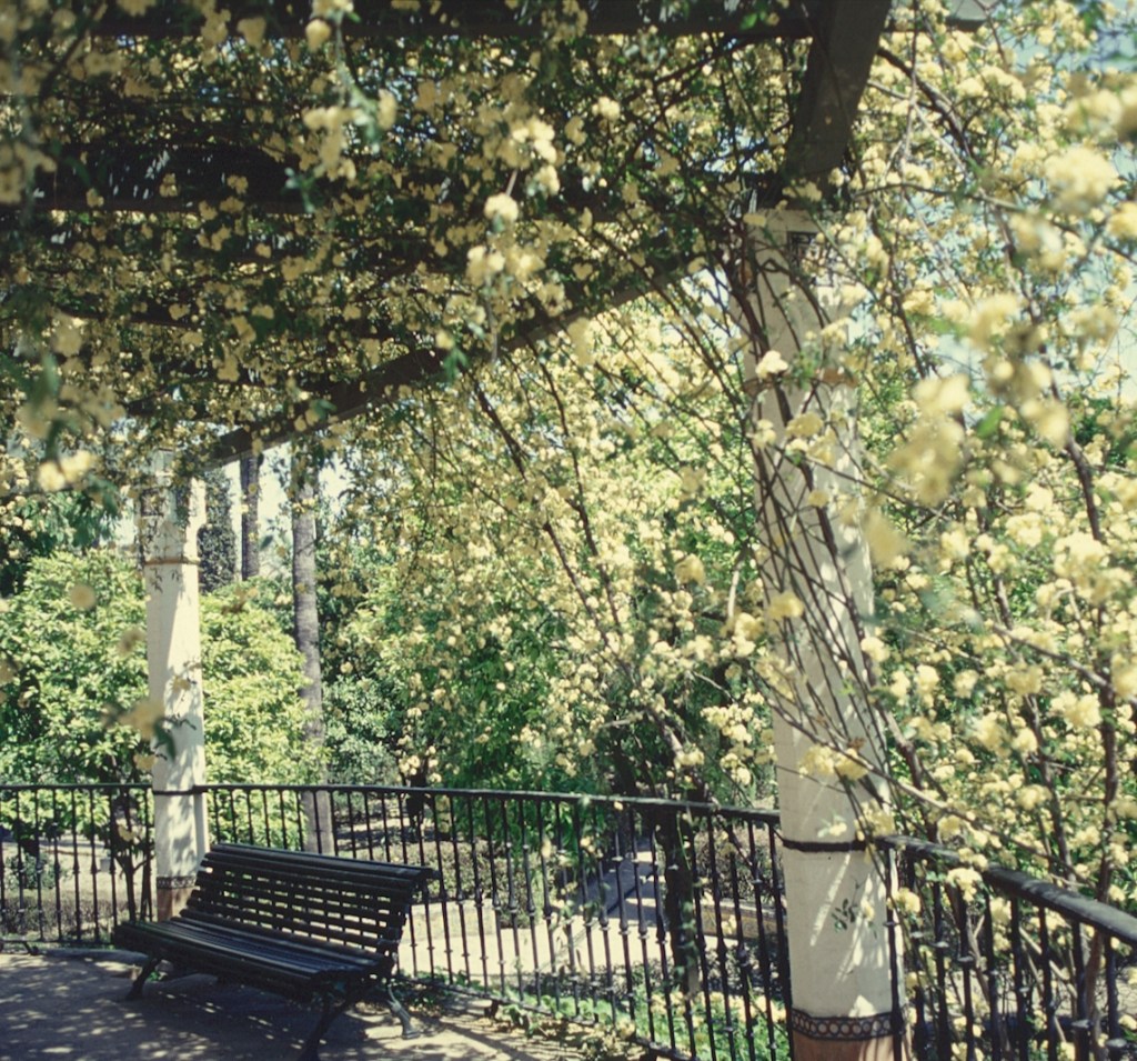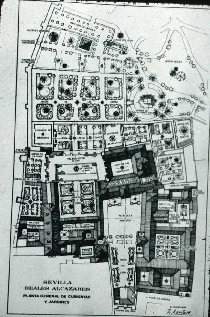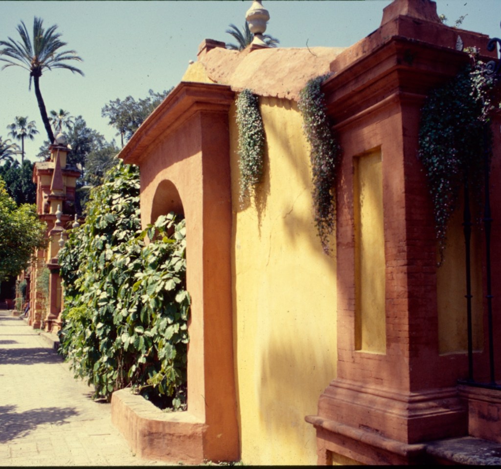 Fotos antiguas de diapositivas digitalizadas tomadas en distintas fechas en los jardines de los Reales Alcázares de Sevilla.