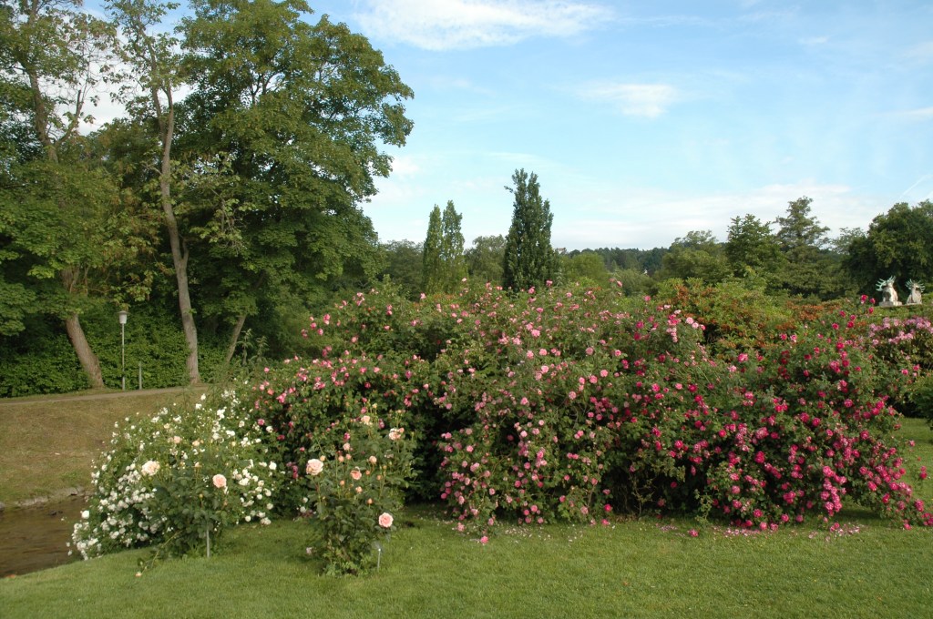 Respira el aroma celestial de las flores y disfruta del esplendor exuberante de los más de 10.000 rosales en 400 tipos de rosas, especialmente desde principios de mayo hasta octubre. Los nombres suenan extremadamente poéticos: ya sea Lichterloh o Schwanensee, Caprice, Brennende Liebe, Feuerzauber o Gletscherfee, cada uno más hermoso que el anterior. Además de las flores de una belleza indescriptible, numerosas esculturas en el parque y una fuente ubicada en el centro invitan a pasear y soñar.