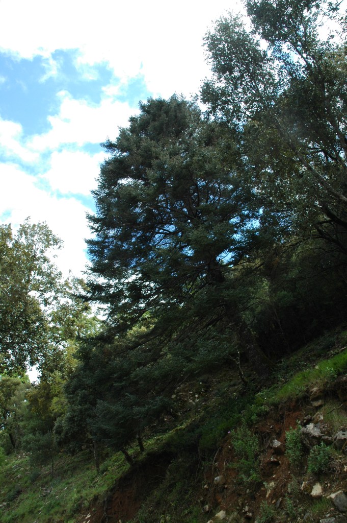 El pinsapo.-.Abies pinsapo pertenece a una de las nueve especies de abetos que viven en las montañas que circundan el Mediterráneo. En concreto, ésta sólo se encuentra en Andalucía en la Serranía de Ronda y la Sierra de Grazalema, donde se extiende en más de 400 ha., sobre la Sierra del Pinar. Generalmente se ubican en laderas norte, protegidos de la excesiva insolación y la consiguiente pérdida de humedad, lo que genera un bosque denso y umbrío en el que los ejemplares compiten por la luz, dejando sin hojas sus ramas más bajas y un sotobosque escaso y reducido a unas pocas especies. Los bosques de pinsapos estuvieron mucho más extendidos hace millones de años, cuando las condiciones climáticas eran muy diferentes a las actuales. Se trata, pues, de un vestigio de aquellos tiempos, una joya botánica restringida a un área de distribución muy reducida.