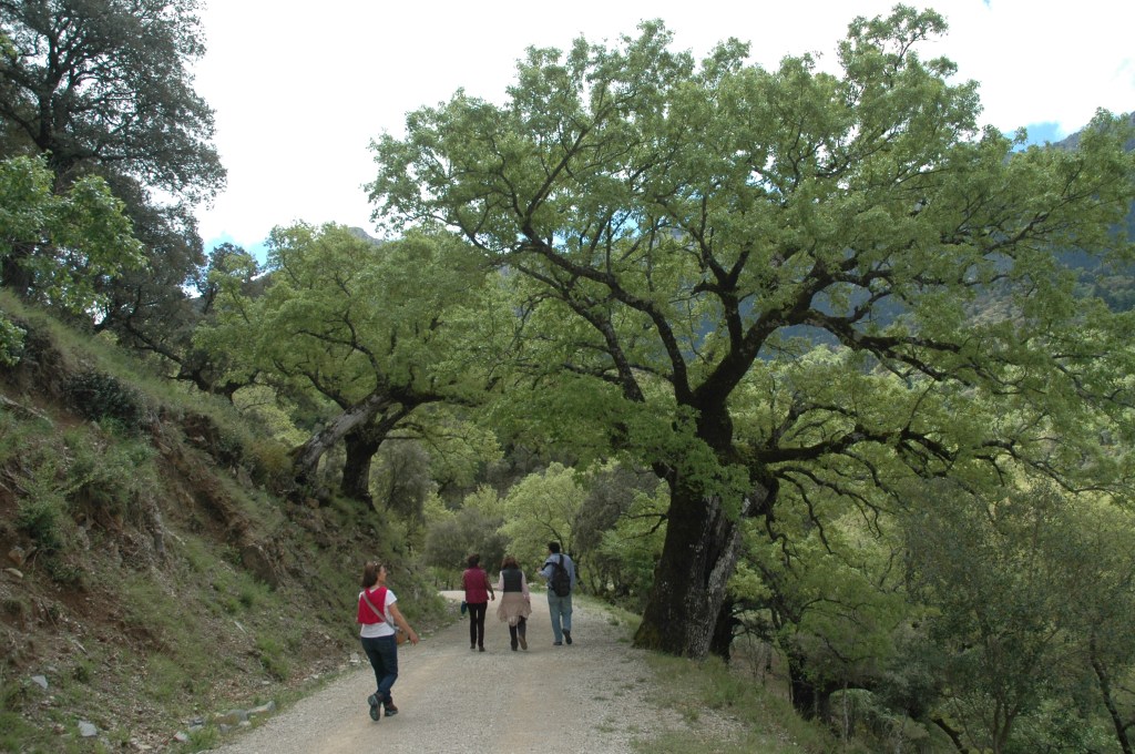 Más adelante, los pinsapos cederán el protagonismo a los quejigos, descendiendo ya por una pista en busca de la pequeña población de Benamahoma. Sobre los tajos de la sierra será posible ver a las chovas y los buitres volando en círculos, como observándonos atentos.