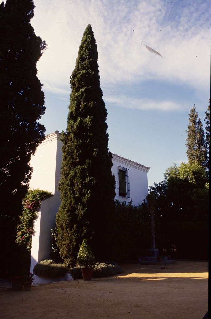 La Huerta de Lebrena la conocí con su Museo de Carruajes y unas magníficas cuadras para caballos de las que el Marques era entusiasta ,el picadero al lado de las cuadras rodeado por un seto de tuyas recortado y moldeado con ondulaciones ,el seto envejeció, me llamó la Marquesa para sustituirlo, pero la convencí para restaurarlo y rejuvenecerlo, no era fácil pero lo conseguimos.