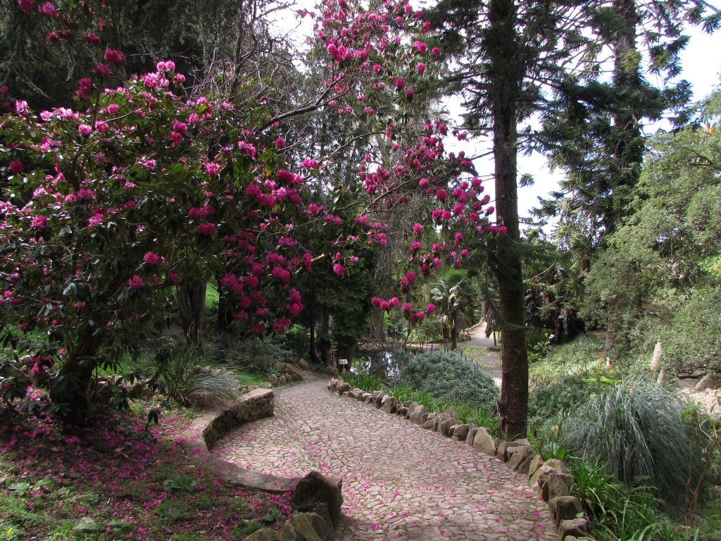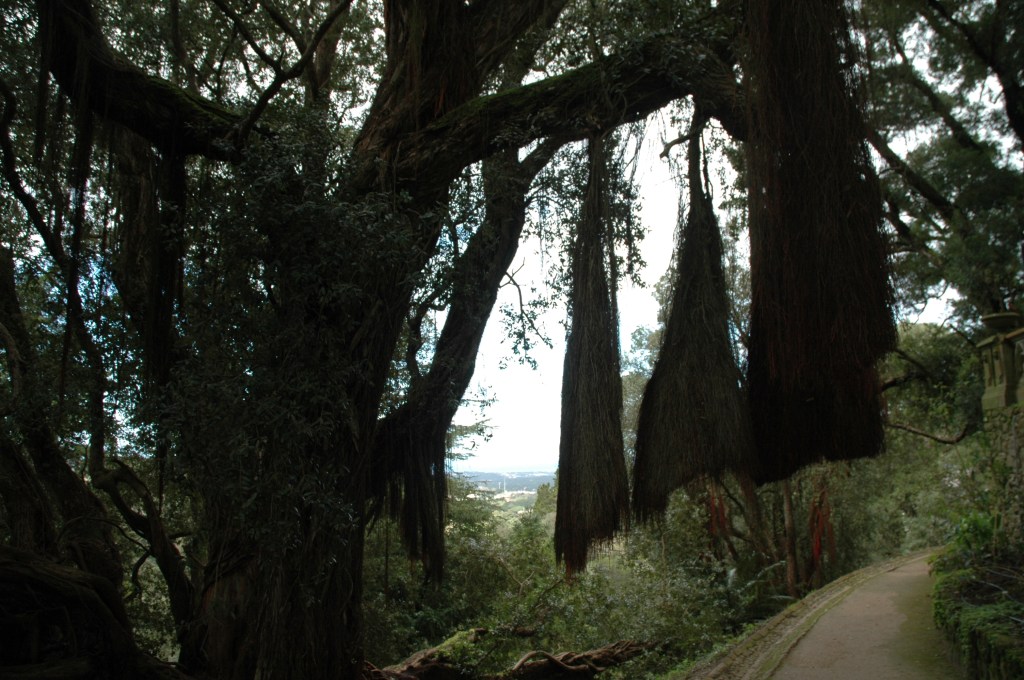 Cuando llegamos por primera vez a la puerta del palacio se desciende hacia el sendero de los jardines de Monserrate, el jardín es un bosque salvaje, salpicado de locuras y árboles raros recogidos por Cook. Es el tipo de lugar que puedas imaginar que trolls y hadas están en casa.
