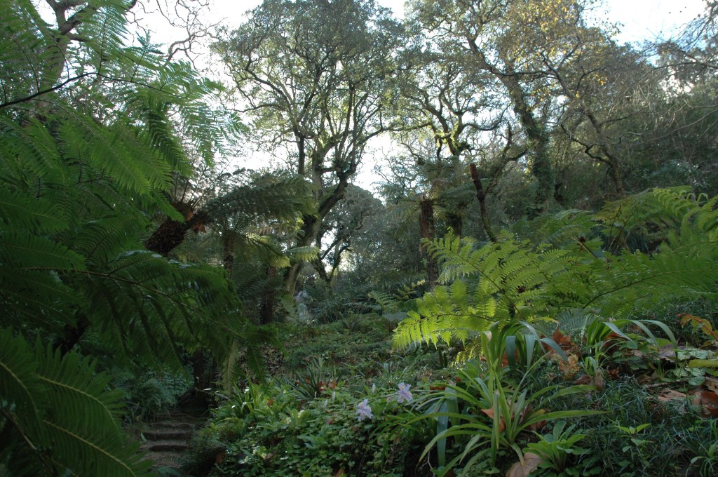 Mientras uno camina por senderos y en comunión con las especies que crecen de forma espontánea de la región (como madroños, acebos e imponentes alcornoques), se encuentra un paisaje sorprendente contraste, con la aparición repentina de araucarias y palmeras, helechos arborescentes de Australia y Nueva Zelanda, así como los agaves y yucas recreando un rincón de México.