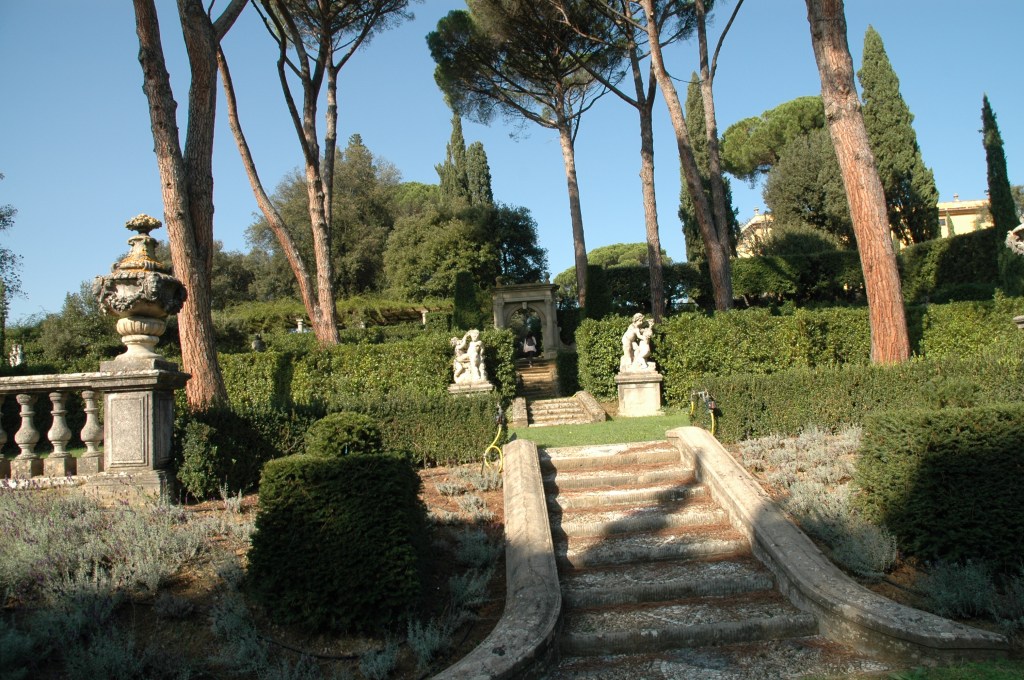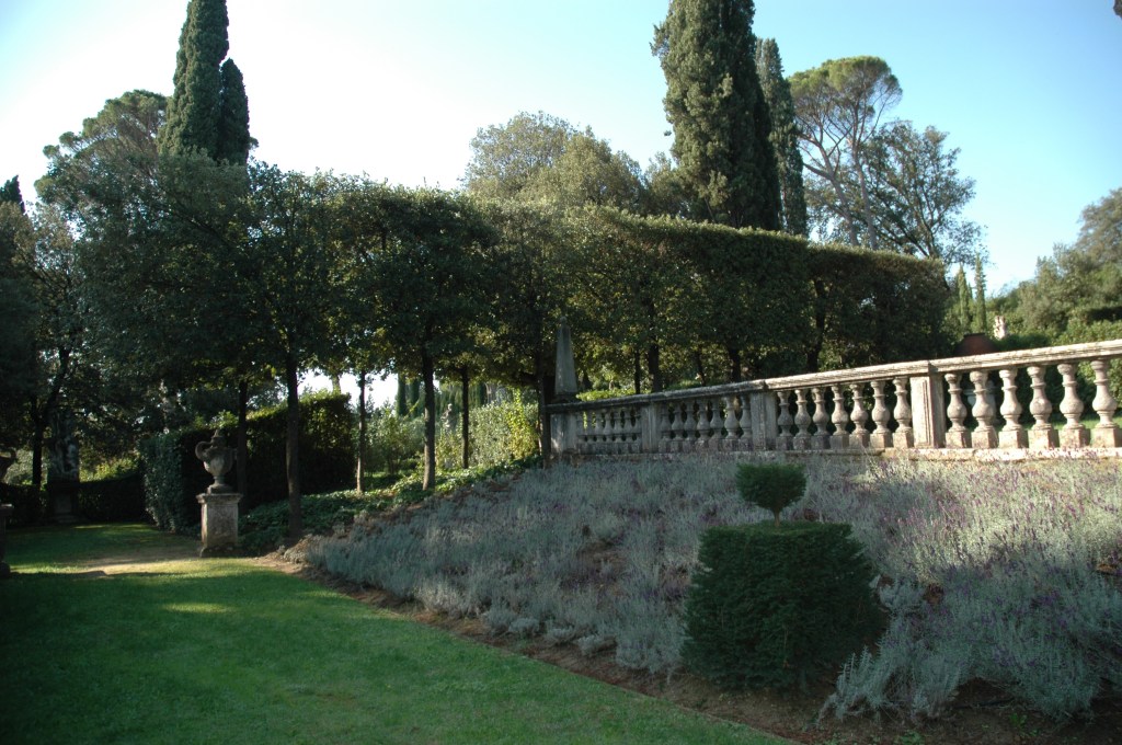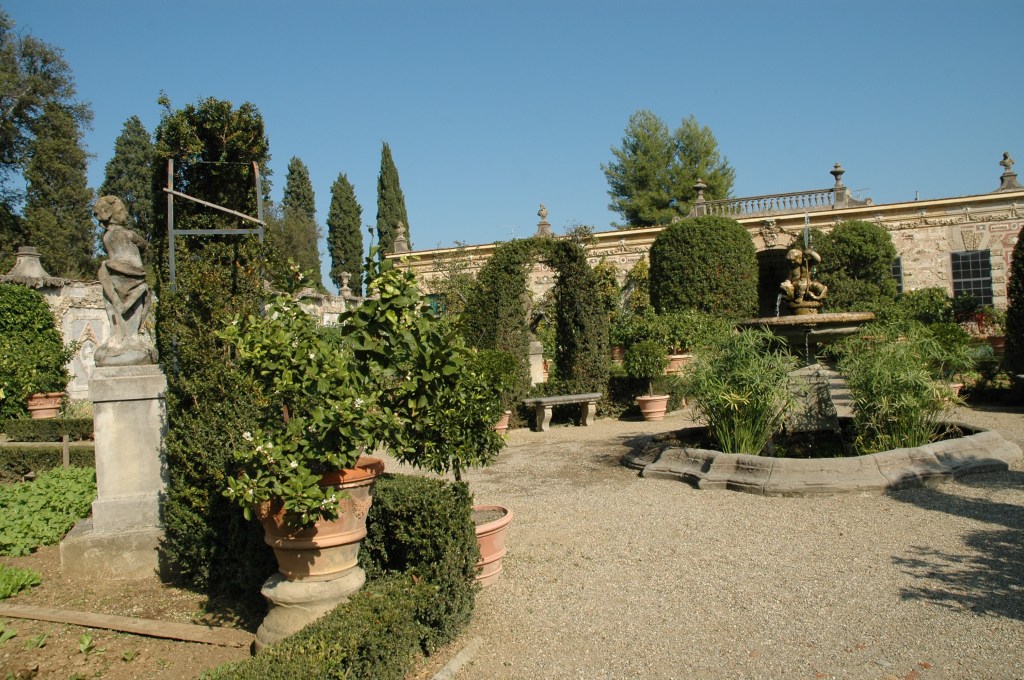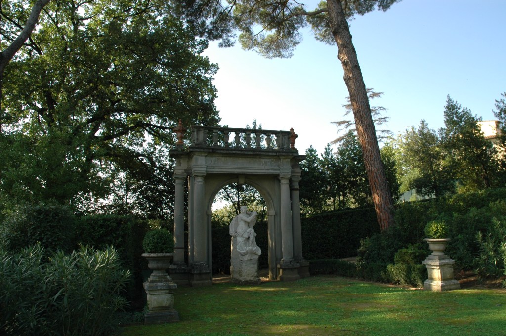 Diseñado por los Acton desde 1908 hasta el estallido de la Segunda Guerra Mundial, el diseño del jardín de La Pietra está muy influenciado por los verdaderos jardines renacentistas de Florencia, aunque también contiene elementos que reflejan modas de jardinería posteriores. Como señala Harold Acton en sus Memorias de un esteta (1948), el jardín de una villa italiana constituye la extensión natural de la casa: en Villa La Pietra, la secuencia de habitaciones de la casa y el jardín se desarrolla en dos ejes perpendiculares y proporciona vistas en todas las direcciones, tanto en el interior como en el exterior. Tales vistas, muchas de composición formal, otras que ocurren casi como felices accidentes, a menudo se componen de combinaciones de objetos, de diferentes edades, hechos de materiales, colores, formas y estilos contrastantes que ilustran perfectamente el gusto ecléctico prevaleciente a finales del siglo XIX y principios. Siglos XX..