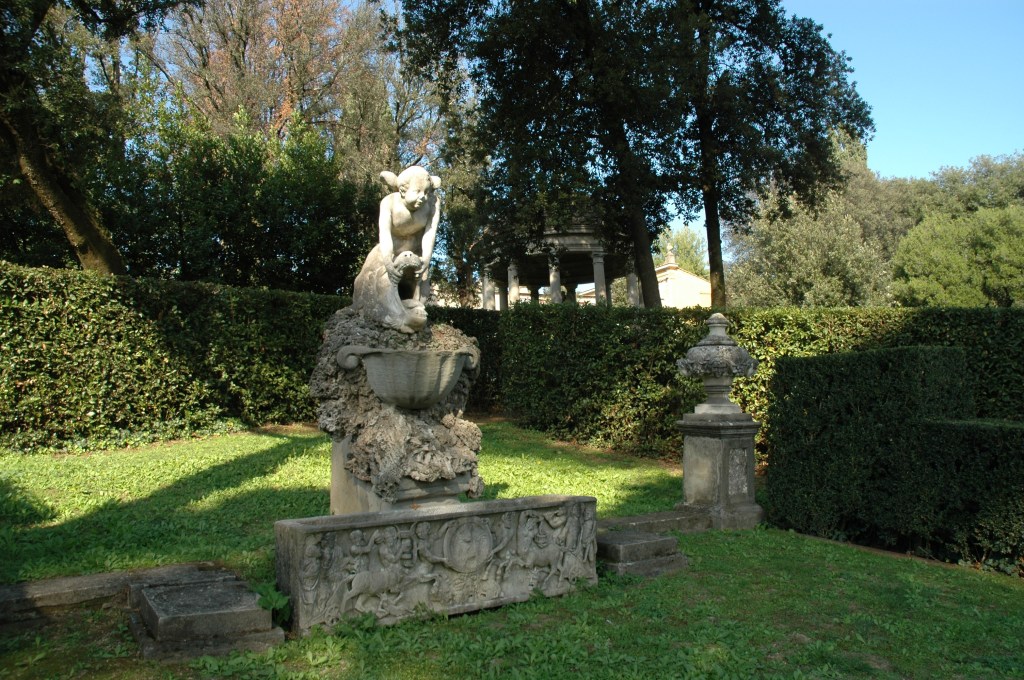 Desde entonces, se han cambiado varios aspectos, incluida la fuente. Las dos esculturas de piedra de grandes animales parecidos a gatos (¿leones?) en los pilares a ambos lados de la puerta son como las que ahora están almacenadas en la villa, originalmente de los Jardines de Boboli. En este Retrato de Flagg, el Pomario es exactamente como se muestra en una pintura titulada Un jardín italiano, de William Merrit Chase, ahora en el Museo de Arte Chrysler en Norfolk, Virginia. Chase fue otro amigo cercano de la pareja, que visitó la Villa y pintó un retrato de Arthur Acton, que aún se conserva en la Colección Acton.