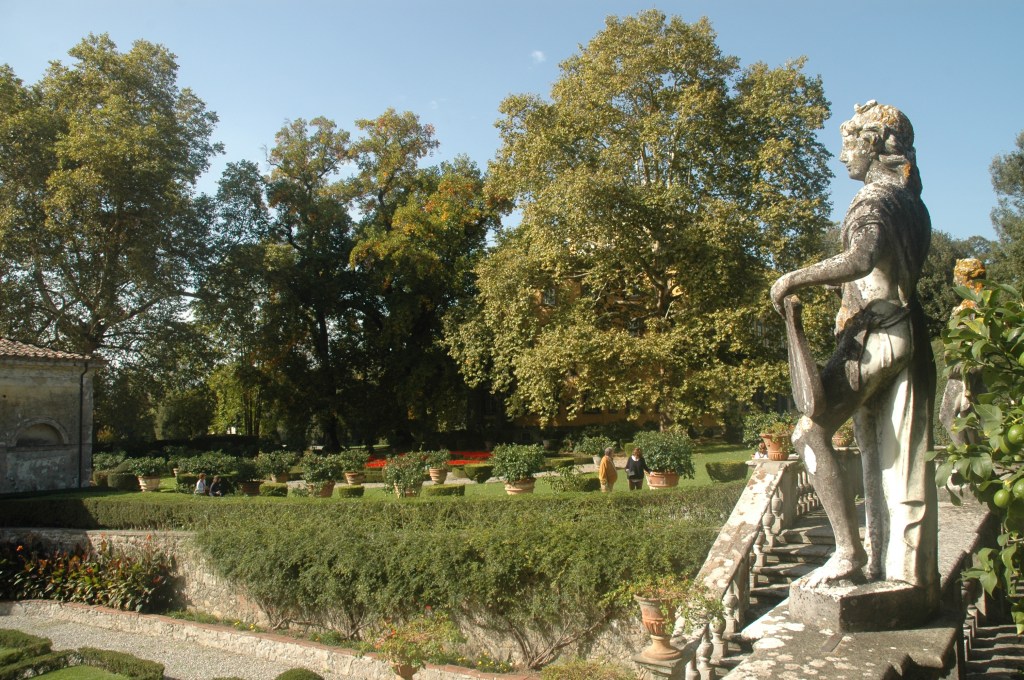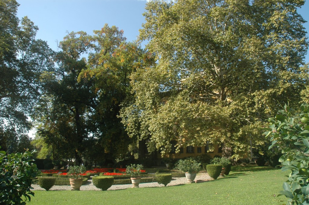 El parque es otro elemento de la villa y se caracteriza por una suntuosidad desbordante. En el siglo XIX, la introducción de plantas de todo el mundo le dio al frente ya la parte trasera un aspecto más romántico. El aspecto del siglo XVI de la finca se puede recrear a través de documentos y fuentes iconográficas en las que el palacio, con su logia central, se representa rematado por una estructura doble, una azotea inclinada cerrada por el símbolo heráldico de la estrella Buonvisi, también presente en sus otras villas.