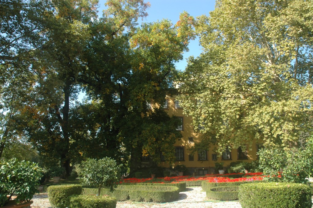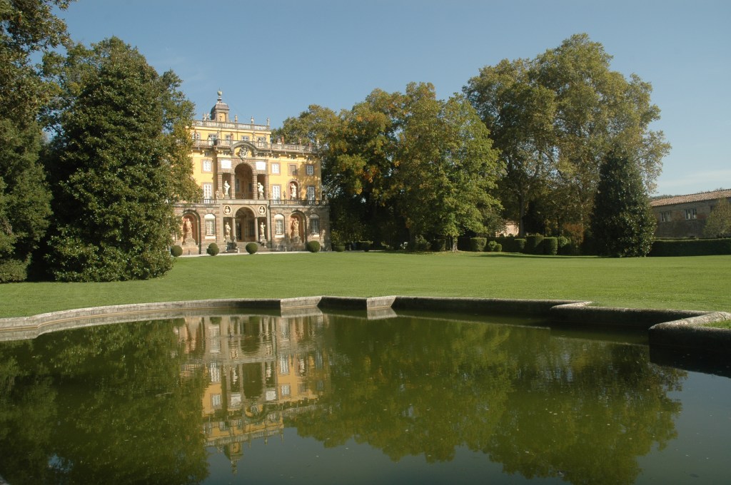 Dos magníficas alineaciones de cipreses, de aproximadamente un kilómetro de largo, anuncian la fachada teatral de Villa Torrigiani, uno de los mejores ejemplos de arquitectura barroca en Toscana.