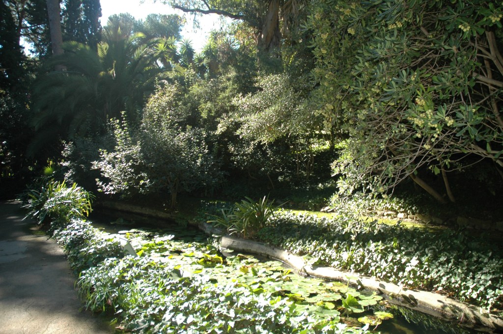 El jardín, reconocido en 1943 como “jardín histórico-artístico”, ocupa 3’5 hectáreas. Su principal valor reside en su característica topografía, su intacto trazado y la colección de flora subtropical que alberga. Situado en la ladera de una pequeña montaña y con un diseño paisajista, se suceden las cascadas, riachuelos, fuentes, escalinatas, invernaderos, grandes árboles y ancianas palmeras, estas últimas constituyen una de las colecciones mejores existentes en Europa.