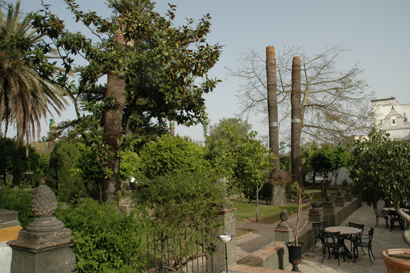 Es éste un jardín recoleto, silencioso, un jardín para la lectura bajo sus árboles centenarios. Un jardín que nos lleva a las declaraciones de amor de la burguesía de finales de siglo XIX, cuando el tiempo pausado de las gentes pudientes permitían mil y un juegos florales con el idioma y con el aroma de los jazmines. El Hotel Duques de Medinaceli ha conseguido crear el ambiente decimonónico de los hoteles aristocráticos en una Casa-Palacio andaluza, (la Quinta de los Ruiz-Golluri, que posteriormente pasó a ser propiedad de los Terry, accionista mayoritaria hasta hace unos años de la firma productora de Vinos Finos y Brandys Fernando A. De Terry, bodegas que se pueden contemplar a través de los setos, al otro lado de los jardines) donde el patio, las fuentes, la vegetación y la luz son los ingredientes básicos para un confort que va más allá del lujo, encaja en la exquisitez y tiene como nota fundamental lo que era calidad de vida en aquella época y hoy un verdadero privilegio: el silencio, la intimidad, los aromas frutales, la embriaguez de la dama de noche y la alegría visual de la jacaranda. Todo ello en el centro de una ciudad histórica que no ha perdido su identidad, El Puerto de Santa María.