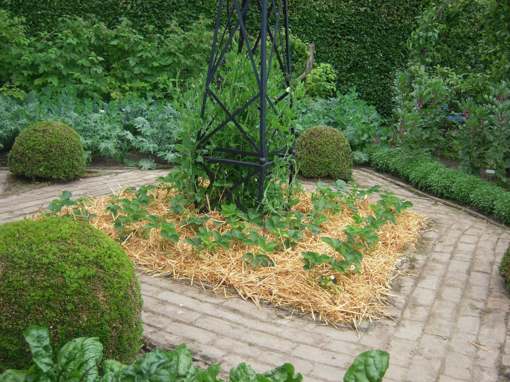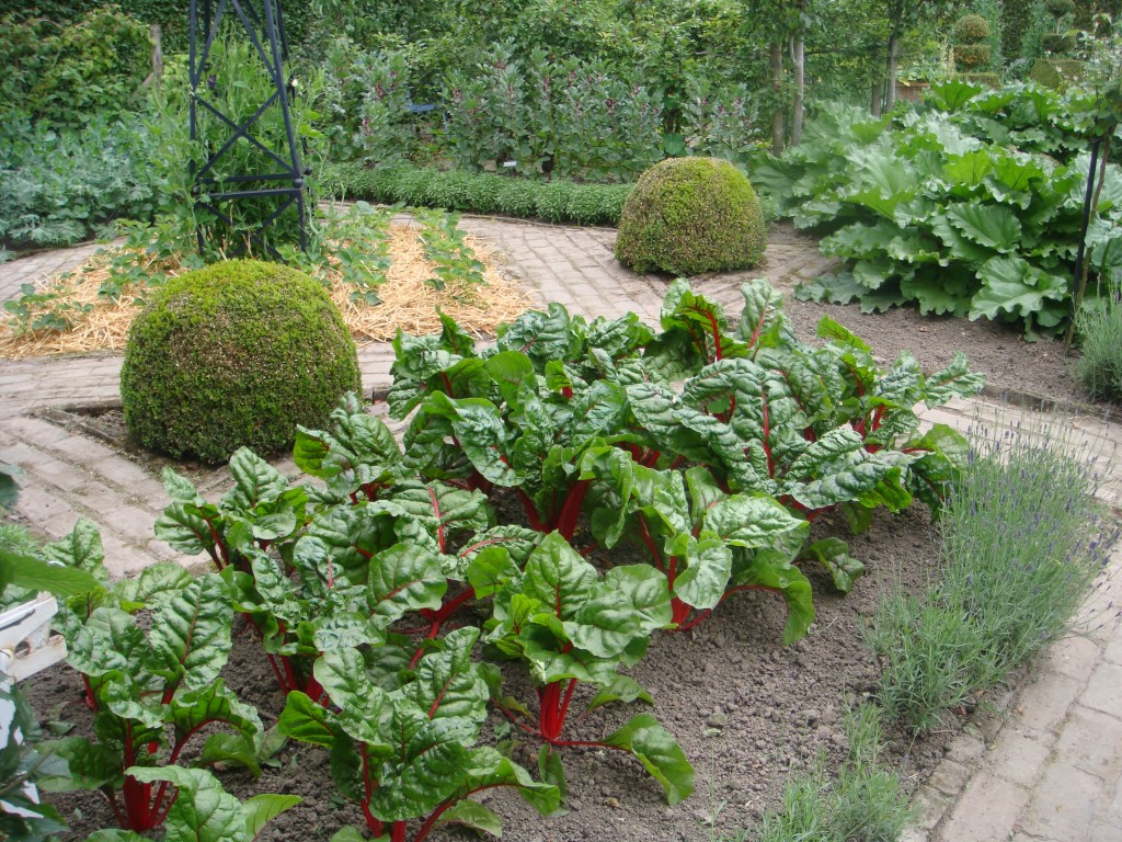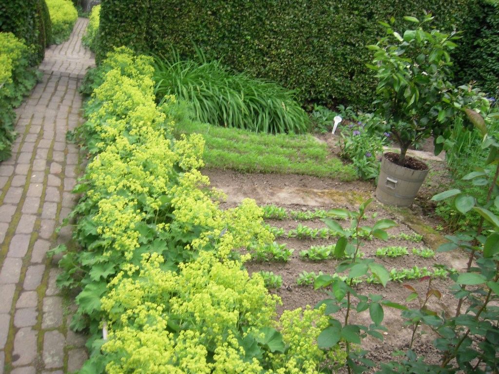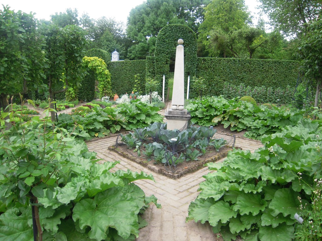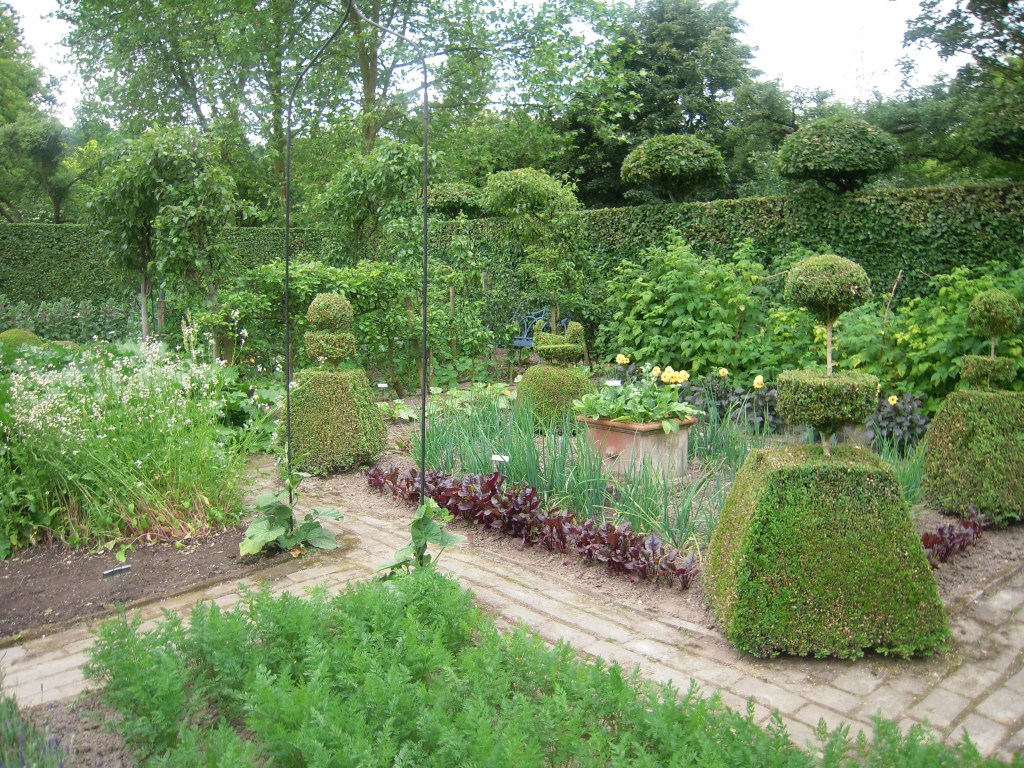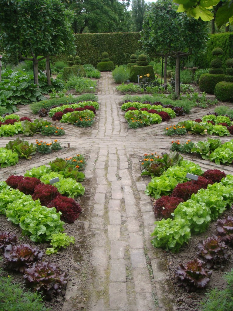 El huerto y la huerta fue el único jardín que Ineke diseñó en papel. El antiguo jardín de pulcras líneas rectas fue reemplazado por un jardín con una división de compartimentos estampada en la que Ineke podía jugar con la forma y el color de la lechuga y el repollo, iluminado con flores comestibles.