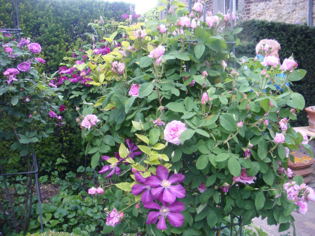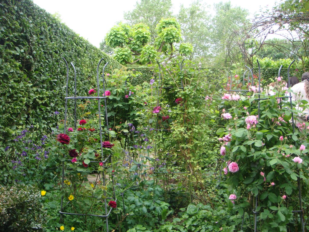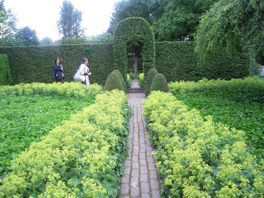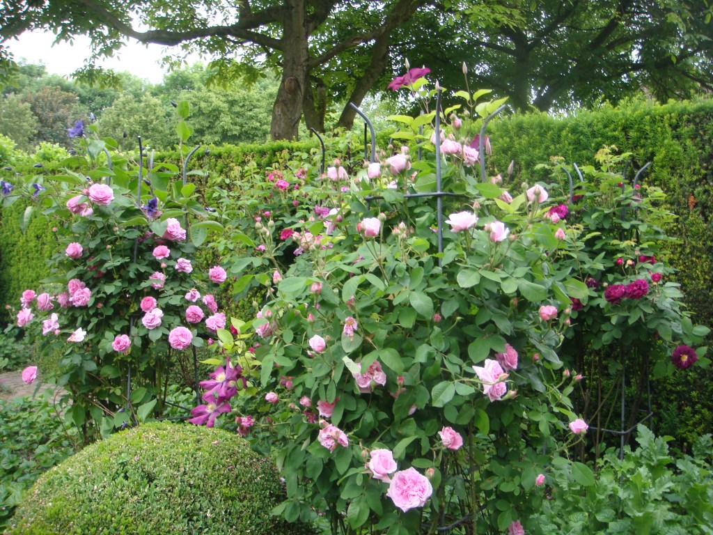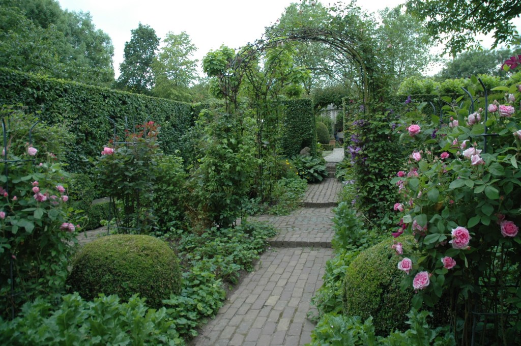 El primer borde que hizo fue en Cottage Garden (ahora el ‘Arriate Largo’) que hasta entonces era parte del huerto y el pasto para animales que rodeaba el Dohm. El doble borde se convirtió en la entrada radiante después del verde relajante de la explanada. El siguiente proyecto de Ineke fue la rosaleda. Esto vino junto a la terraza donde debe haber sido maravilloso disfrutar de las rosas antiguas perfumadas que ella prefería. El color elegido fue todos los tonos entre el rosa y el lila profundo que daban una vista espectacular.