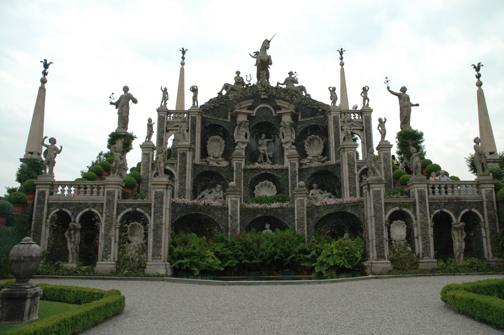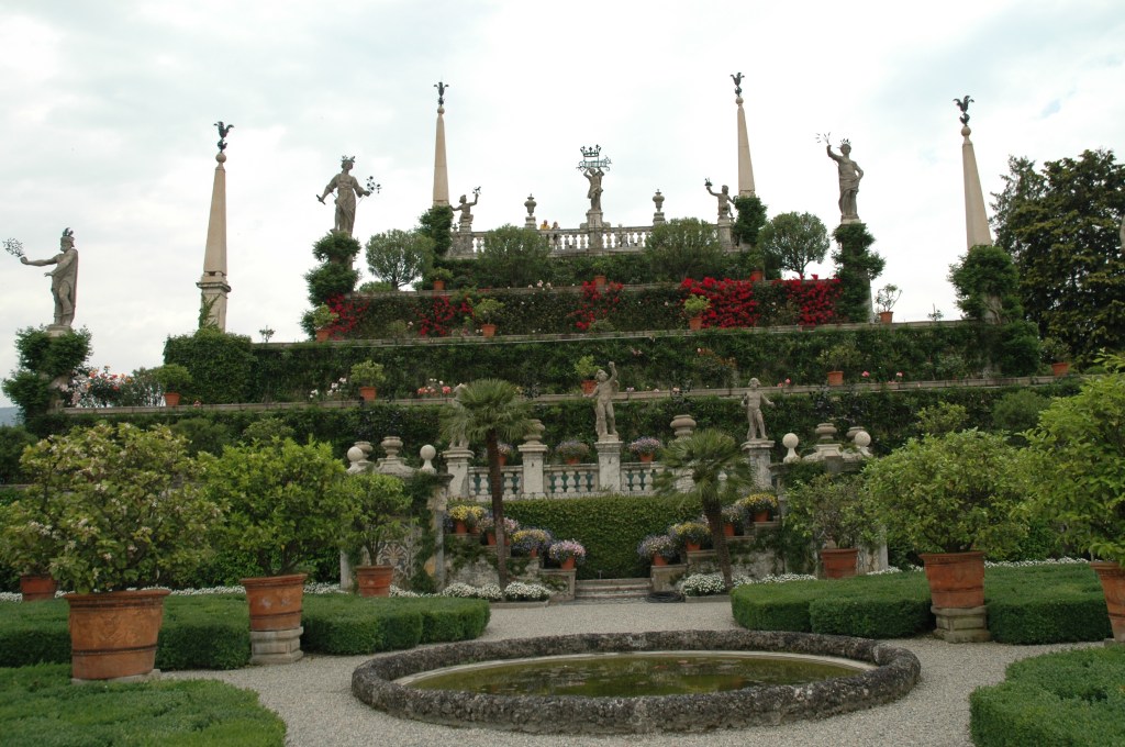 Famoso en todo el mundo es el jardín barroco italiano de Isola Bella, un elegante barco de piedra y flores que surca el azul intenso del lago Maggiore. El núcleo de su complejo sistema escenográfico se desarrolla en torno al Teatro Massimo es el monumento más importante del jardín de Isola Bella. Estatuas, obeliscos y fuentes se integran a la perfección con la vegetación de las diez espectaculares terrazas, sobre las que se alza la estatua del Unicornio, símbolo heráldico de la familia Borromeo. Diez terrazas superpuestas que forman un tronco de pirámide, rodeadas de parterres en diferentes niveles y conectadas por escaleras. El colosal unicornio, los obeliscos, las estatuas, las dos torres y demás elementos arquitectónicos asombran al visitante. Así como la vegetación. Aquí el suelo y el clima lacustre han permitido el crecimiento de especies y variedades que han encontrado un hábitat ideal en la isla.