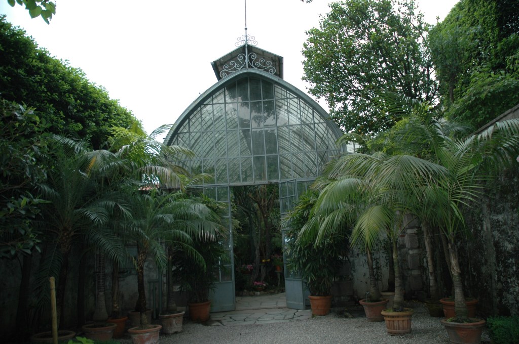 Alrededor del Teatro, un tumulto de flores y plantas raras: el alcanfor centenario.-Cinnamomum camphora, la Gunnera manicata, cuyas hojas pueden alcanzar los 2 metros de diámetro, la muy fragante Olea fragrans, la muy rara Halesia diptera con sus flores que parecen copos de nieve. , el anís estrellado, el pino mexicano.