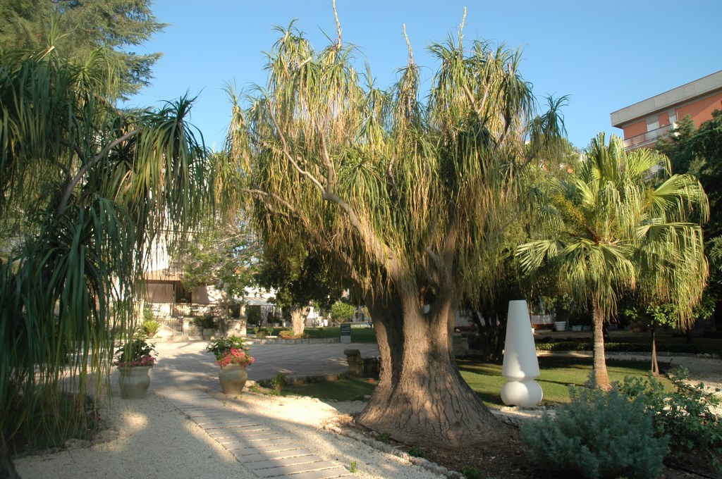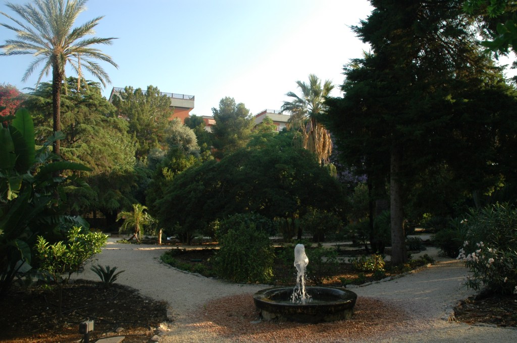 De vista a los Jardines de Sicilia nos alojamos en el Hotel Parco delle Fontane en Siracusa para preparar fuerzas para el día siguiente y como no, nos paseamos por su jardín histórico, extendido sobre una hectárea que cuenta con notables plantas botánicas incluyendo algunas con más de un siglo de vida, desde el mismo período de construcción del edificio e incluso antes, a finales del siglo XIX.