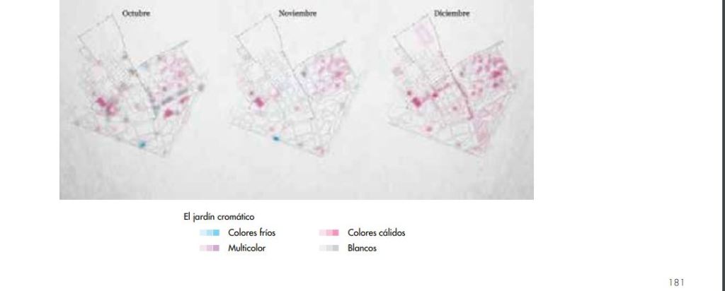 Teniendo en cuenta estas apreciaciones, y retomando las preguntas anteriormente formuladas, tenemos que reconocer que, efectivamente, sabemos cuáles son las especies que constituyen los jardines y también sus cualidades, así como los comportamientos aislados de cada una. Pero en otro orden de cosas, poco sabemos sobre su localización, sobre los patrones de asociaciones entre ellas, sobre los efectos emergentes que provocan al trabajar en conjunto, o de si existe alguna relación entre estas cualidades y nuestras preferencias por tal o cual lugar en el jardín a lo largo del tiempo.