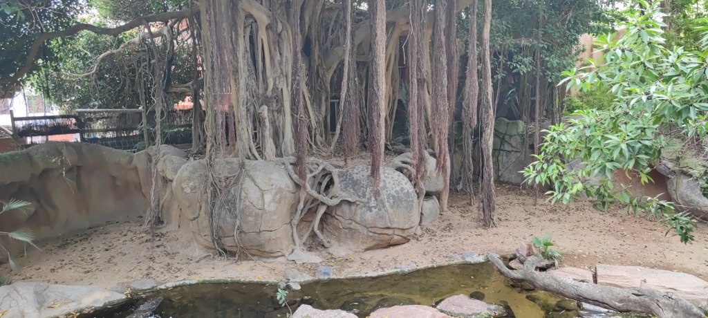 Ayer tuve la suerte de ver el Bioparque con gran actividad, muchos colegios con sus profesores viniendo de los pueblos y ciudades de la provincia ,turistas y visitantes de la misma ciudad, grupos ordenados con sus monitores al frente que les iban relatando las historias y orígenes de cada una de las especies que estaban contemplando, me uní a algún grupo momentáneamente para conocer cual era su discurso ante la ilusionada grey infantil que seguía sus palabras identificando cada animal y alabando sus movimientos ,me entristeció que hablando de naturaleza no se hiciera referencia a ninguna de las especies vegetales notables que existen en el recinto, los bosques de bambúes, las grandes higueras de la familia de los ficus, las variedades de palmeras que forman el bosque tropical que envuelve esta interesante colección de animales y otros muchos que completan el fantástico dosel.