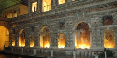 EUROPA.-LA VUELTA AL MUNDO EN 885 JARDINES.-ESPAÑA.-SEVILLA.-REALES ALCAZARES.-NOCHE.